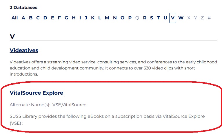 - If you are logging in from home, please go to 'V' on Databases and select Vitalsource Explore.